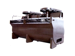 浮选机一方面吸入充足的空气与矿浆混合,一方面搅拌矿浆与药物混合,同时细化泡沫,使矿物粘合泡沫之上,浮到矿浆面再形成矿化泡沫。调节闸板高度,控制液面,使有用泡沫被刮板刮出。浮选机槽底下未被叶轮吸入的部分矿浆,通过埋没在矿浆中的中矿箱进入二室的槽底下,完成一室的全部过程后,进入三室,浮选设备如此周而复始,矿浆通过最后一室后进入尾矿箱排出最终尾矿,从而达到选矿的目的。